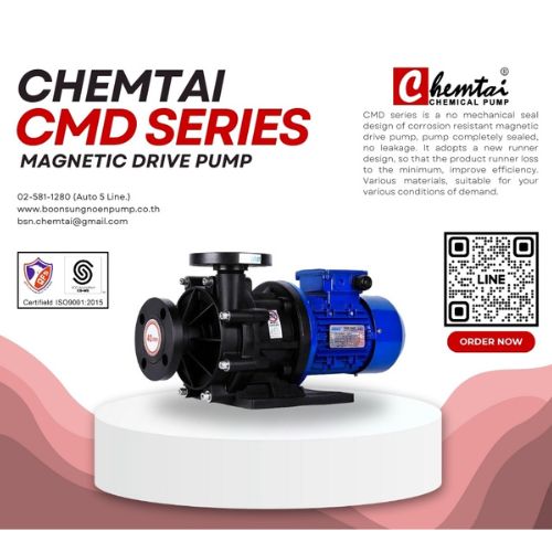 ปั๊มสารเคมีระบบเเม่เหล็ก CHEMTAI CMD ปั๊มจ่ายสารเคมีที่ทนการกัดกร่อนสูง